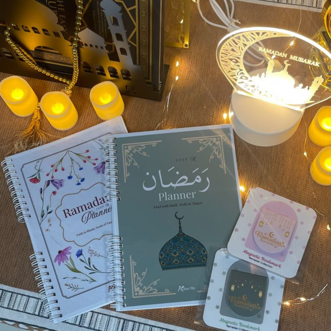 Prepare for a more focused and blessed Ramadan with our beautifully designed planner and magnetic bookmark.